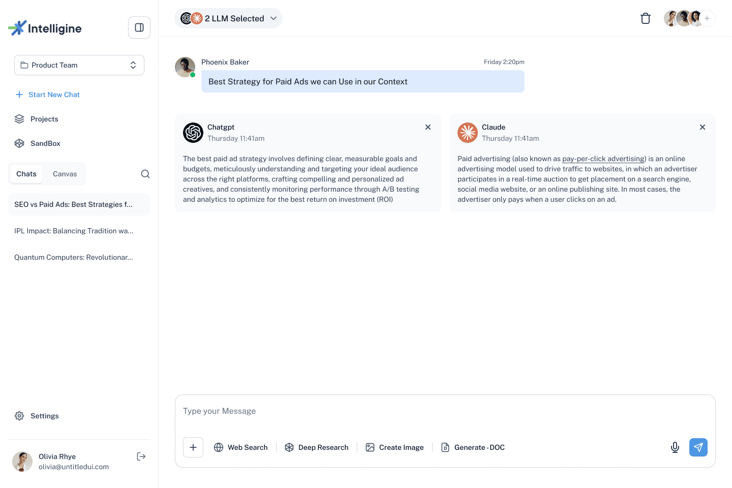 Intelligine’s Arena and Vault give you private, anonymized access to 40+ leading LLMs, including GPT-4, Claude 3, Gemini, LLaMA, DeepSeek, Mistral, and domain-specific models.